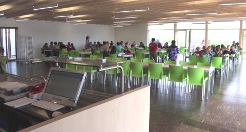 Zum Mittagessen in der Mensa gibt es einen Speiseplan mit täglich wechselnden Gerichten.